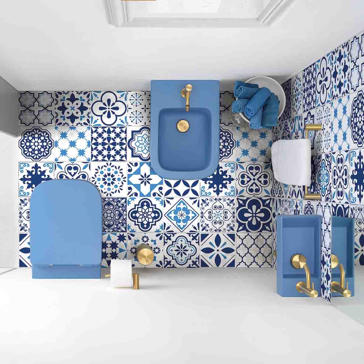 Elegant mattblått toalett til badet i enkelt design