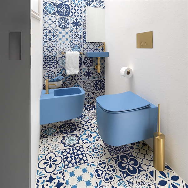 Quo Matt blue - Vegghengt toalett Matt blå med "NO BACT" overflate og toalettsete