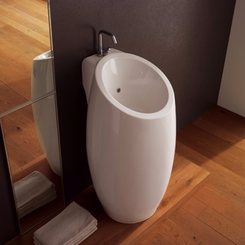Gulvstående servant Tazzo laget av massiv Bianco Carrara marmor
