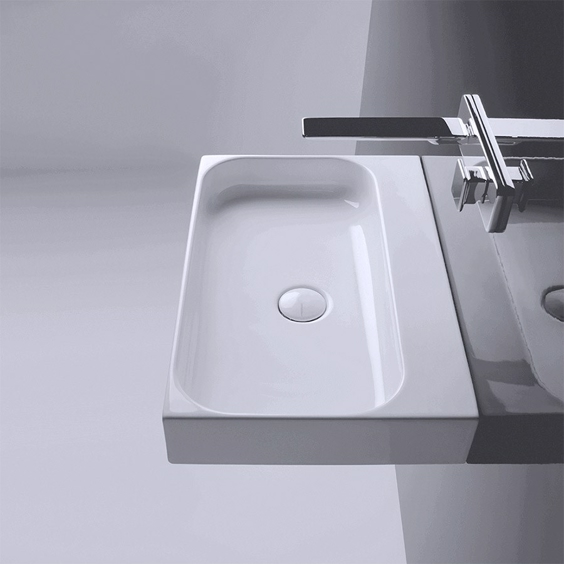 Firkantet servant Unita 80 i hvitt porselen og minimalistisk design