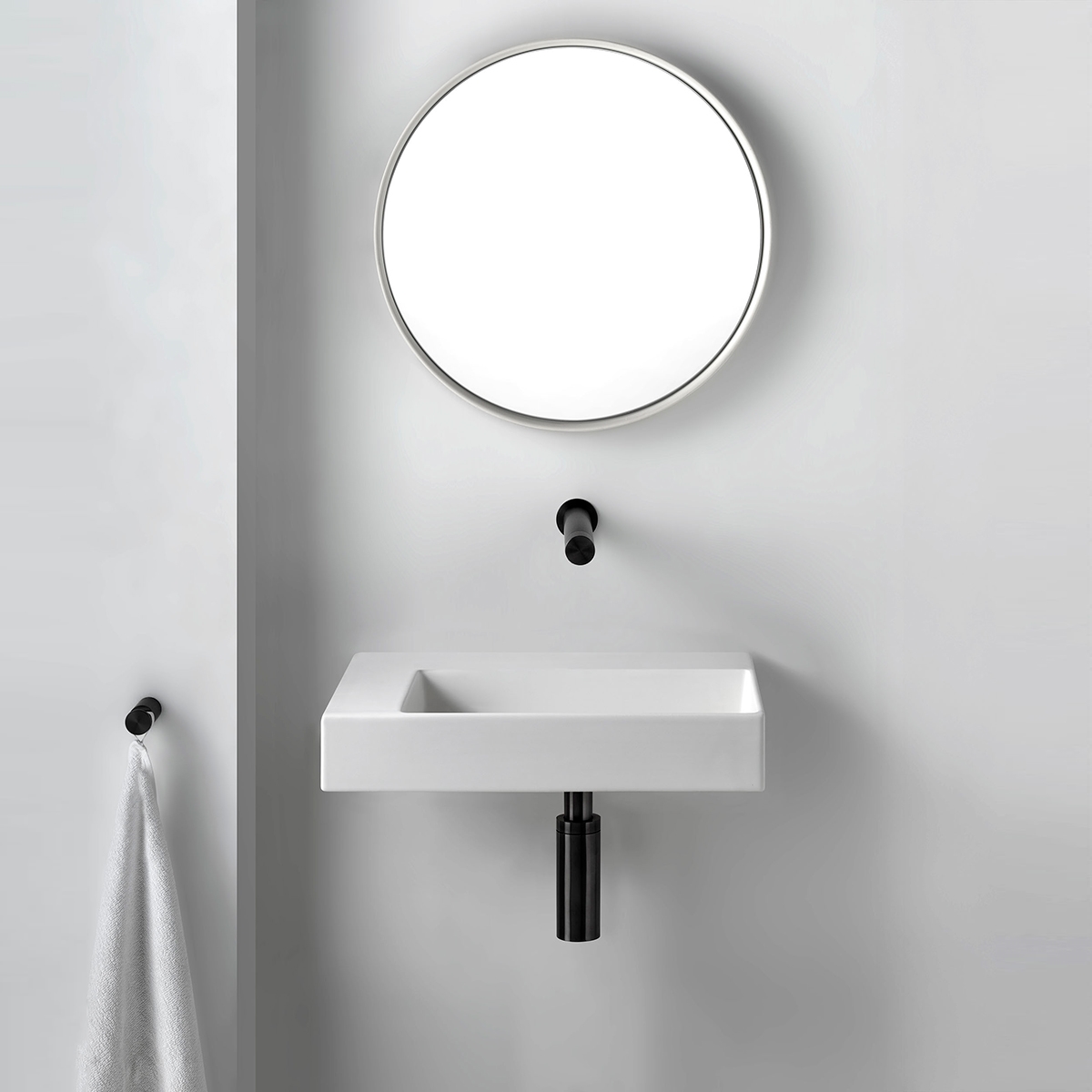 Den lille servanten gir badet et designløft med sine skarpe linjer, samtidig som den ikke tar opp mye plass.
